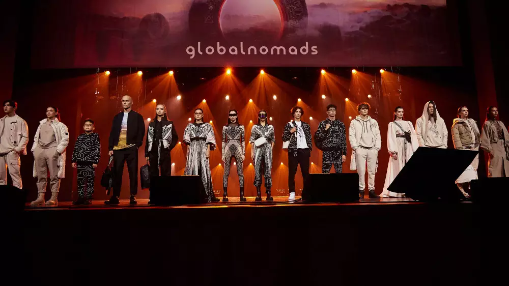 Бренд Global Nomads представил вниманию зрителей красочное шоу - свою новую коллекцию под названием "Ритмы веков", подчеркивая концепцию Global Nomads – синтез традиционных степных орнаментальных мотивов с идеей конструктивизма и футуристическими представлениями о том, как могут выглядеть номады будущего.