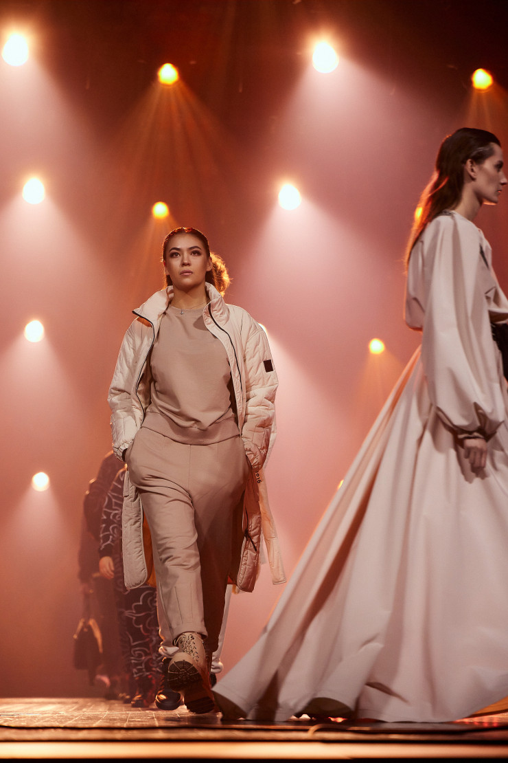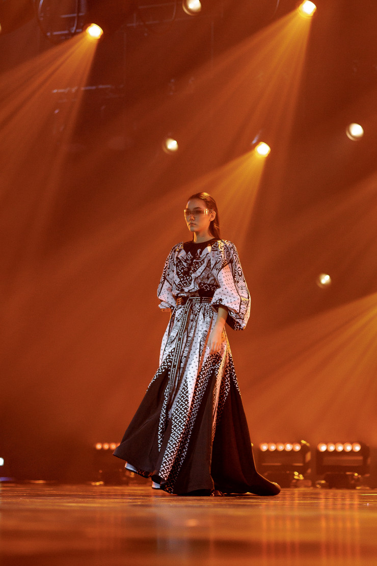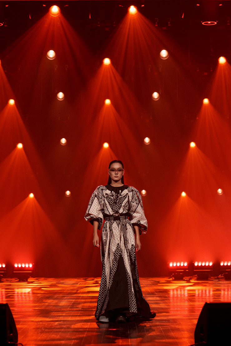 Одним из ярчайших событий в мире казахстанской моды этой осенью стала презентация новой коллекции одежды Global Nomads. Модный показ прошел в уникальном формате: модели выходили не на подиум, как это обычно бывает, а на сцену Almaty Theatre – главной театральной площадки города, расширив тем самым привычные представления о фешен-мероприятиях.