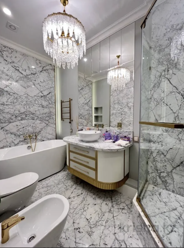 Также, по информации в объявлении, ванная выполнена из натурального каррарского мрамора (один из ценнейших сортов мрамора - прим.), работает система канального кондиционирования.