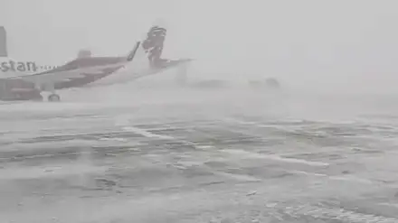 Какие авиарейсы задерживаются в аэропорту Астаны из-за метели Кадр из архивного видео