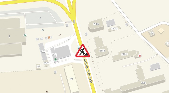 - 8 и 9 июля проспект Достык в районе дома № 218Б. Автобусы №№ 12, 128, 141, 29, 29Р, 5, 5А, 5Б, 99 будут ездить по следующей схеме в двух направлениях: Достык - Аль-Фараби - Фурманова - Хаджи Мукана - Достык.