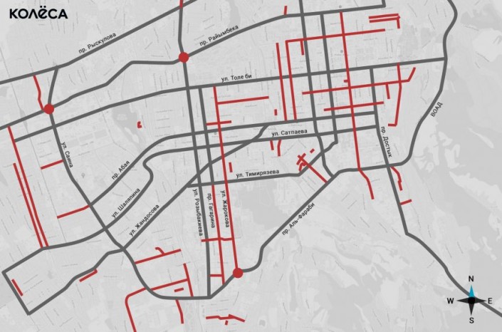 - северная часть проспекта Назарбаева ниже проспекта Райымбека, где строится развязка на пересечении с улицей Жансугурова;