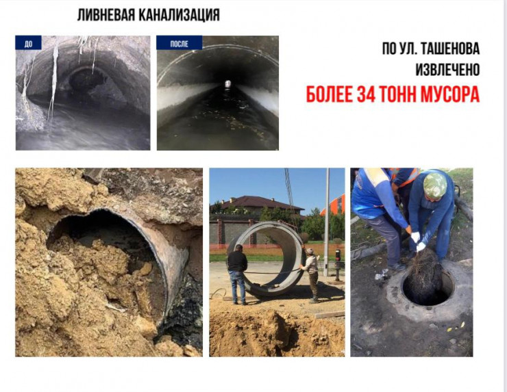 В своем Instagram аким написал, что для улучшения пропускной способности за полгода прочищено более 54 километров коллекторов, 4 тысячи смотровых и дождеприемных колодцев, 32 тысячи погонных метров арычно-лотковых сетей. Только из арыков и колодцев вывезено 2,5 тысячи тонн мусора и ила. Было выявлено более 230 незаконных врезок. Данные работы продолжаются на постоянной основе, уточнил Кульгинов.