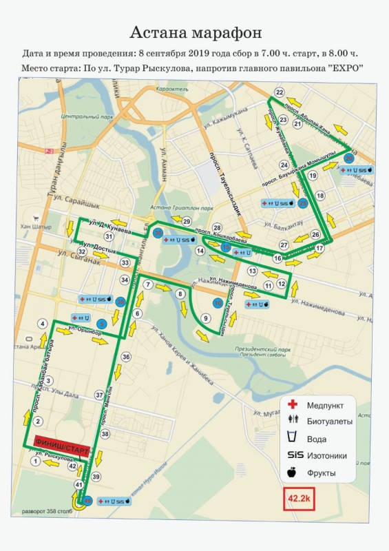 В воскресенье, 8 сентября, в столице состоится международный марафон Astana Marathon-2019. На время проведения забега по его маршруту в столице полностью или частично перекроют ряд улиц, передает Tengrinews.kz со ссылкой на сайт акимата города.