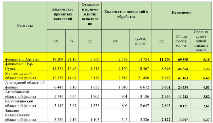В разрезе регионов Казахстана получение средств из ЕНПФ на улучшение жилищных условий выглядит следующим образом: