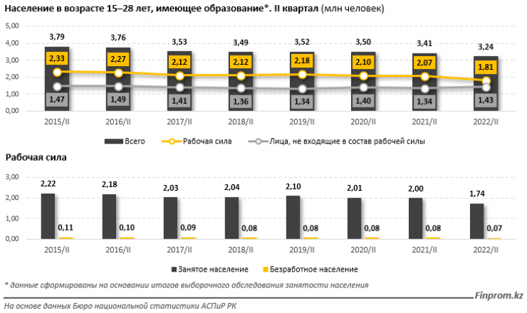 Доля молодежи, не получающей образования и не имеющей работы, в Казахстане составила 6,4 процента, передает Tengrinews.kz со ссылкой на Finprom.kz.