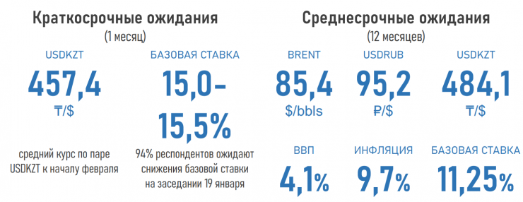 Валютный рынок останется сбалансированным с точки зрения спроса и предложения на краткосрочном горизонте: к началу февраля курс USD-KZT прогнозируется на отметке 457,4 тенге за доллар. В феврале значимую поддержку рынку окажут крупные налоговые платежи за предыдущий год.