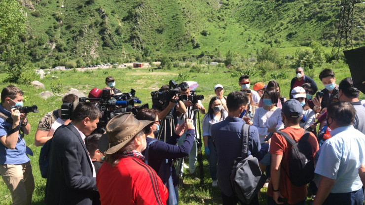 Брифинг с участием вице-министра экологии Ерлана Нысанбаева в ущелье Аюсай