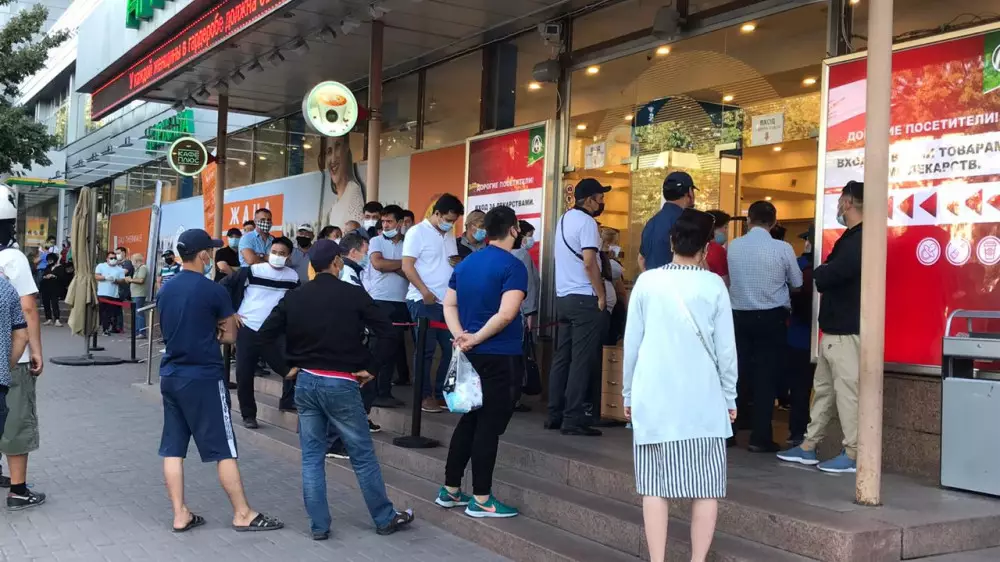Айта кету керек, кезекте тұрғандар 2 метр қашықтық сақтау керегін ескермеген.
