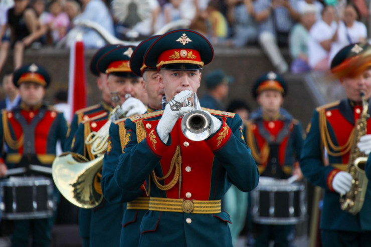 Отличился и военный оркестр из России, который исполнил в современной аранжировке казахскую народную мелодию "Қамажай".