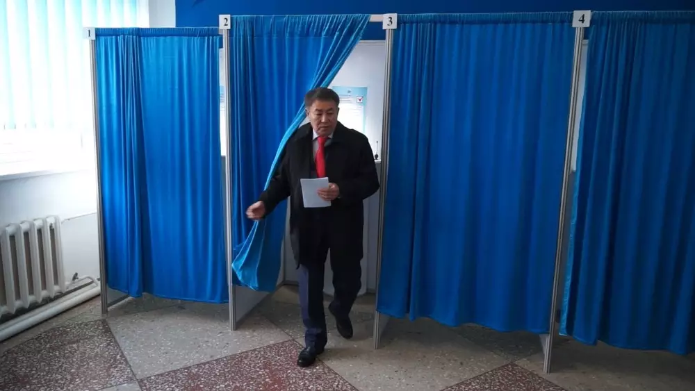 Кандидат Сыздыков проголосовал на выборах и уехал в Кокшетау Фото пресс-службы КНПК