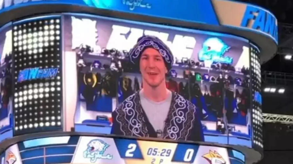 Ролик, в котором хоккеист предстал в чапане, показали болельщикам во время первого матча плей-офф с "Металлургом".