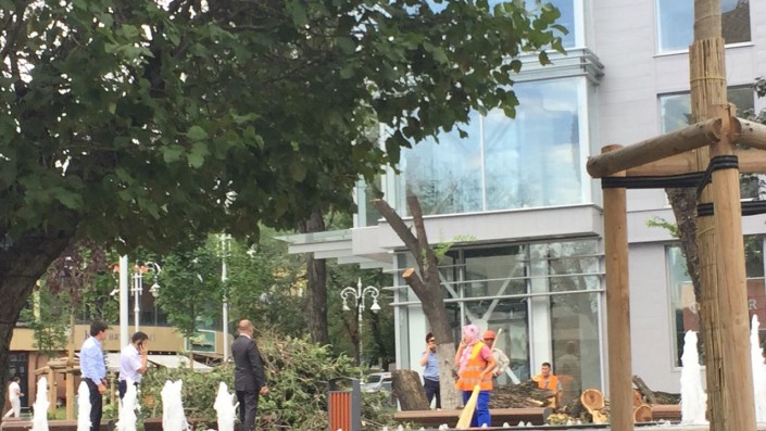 Как уточнили в городской администрации, информация о сносе деревьев на Арбате поступила 12 июля 2018 года. Сотрудники Управления природных ресурсов и регулирования природопользования Алматы, представители природоохранной полиции МПС ДВД Алматы, сотрудники отдела благоустройства и отдела охраны окружающей среды и экологии аппарата акима Алмалинского района выехали на место.
