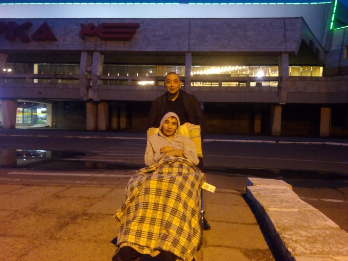 Ранее он сообщал, что в индийской клинике ему помогают в вертикализации тела. В аэропорту он уже  сидел в кресле.