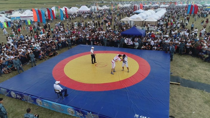 Во второй половине дня начались соревнования по национальным видам спорта: қазақша күрес, аударыспақ, асық ату, аламан бәйге, топ бәйге и көкпар.