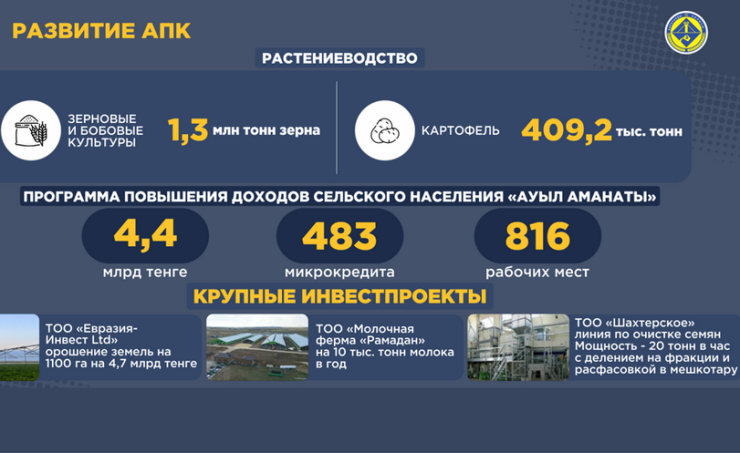 Одной из приоритетных программ, по словам акима, является инициатива "Ауыл аманаты", направленная на повышение благосостояния сельских жителей и поддержку малых хозяйств. В рамках программы Карагандинская область получила финансирование в размере 4,4 миллиарда тенге, которые были направлены на предоставление 483 микрокредитов для сельских предпринимателей. Как пояснил Булекпаев, около половины этих кредитов было выделено для проектов, связанных с развитием животноводства, а остальные направлены на создание и расширение сельских бизнес-проектов. В результате реализации программы в сельской местности было создано 816 новых рабочих мест, а также основано более 60 сельскохозяйственных производственных кооперативов.