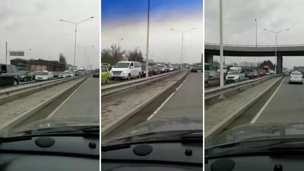 Видео автомобильной пробки на проспекте Райымбека рассылают пользователи WhatsApp. На кадрах видно, что затор растянулся практически до микрорайона Аккент. Из-за строительства развязки возле рынка "Алтын Орда" дорога в этом районе сузилась, поэтому здесь часто наблюдаются заторы, однако сегодня, 18 марта, пробка длиннее обычного.