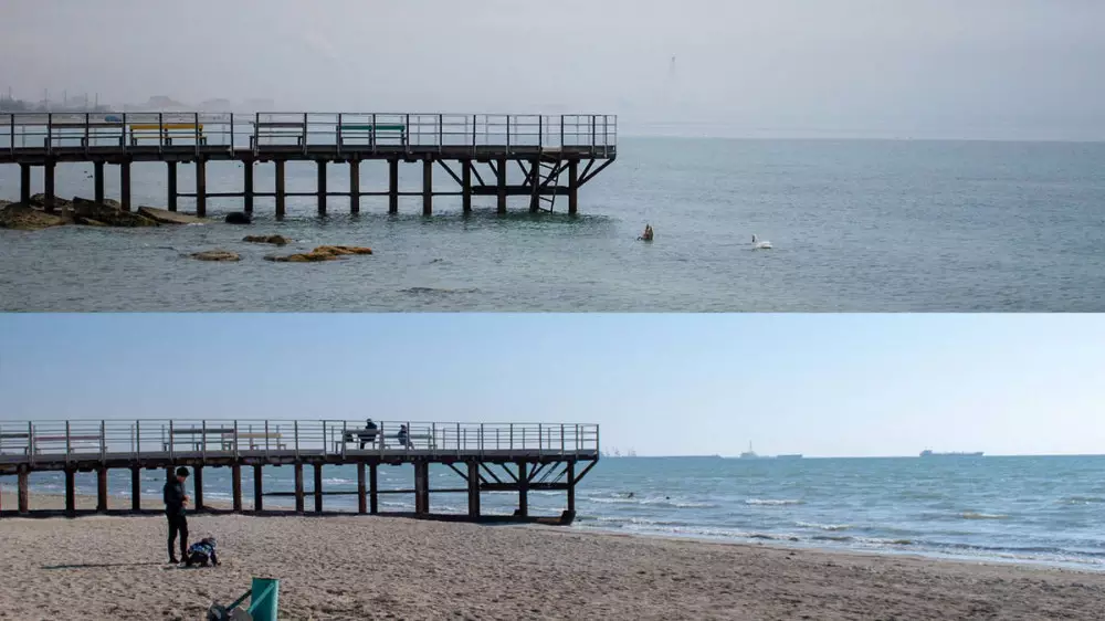 Кейін Caspy Media YouTube-арнасында Ақтаудағы су арнасының 2004 және 2008 жылдар аралығындағы салыстырмалы суреттер топтамасы жарияланды. Кадрлардан осы уақыт ішінде Каспий теңізінің тартылғанын көруге болады. Су әдеттегі жағалау сызығынан, "Бриз" яхта клубынан, 4-шағынаудандағы еңістен, "Шағала" санаторийінен, 4-шағынаудандағы жартастан, 9-шағынаудандағы жағалаудан және 14-шағынаудандағы жағалаудан едәуір алыстап кеткен.