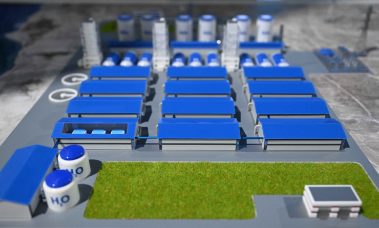 Президенту презентовали макет будущего завода Hyrasia One по производству зеленого водорода.