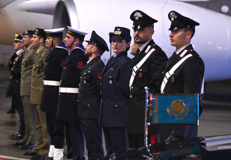 В аэропорту Рима Токаева встретили министр обороны Италии Гвидо Крозетто и представитель папы римского Франческо Каналини. У трапа была выстроена рота почетного караула.