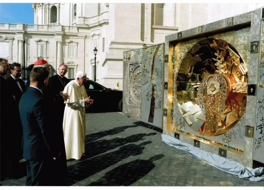 Как известно, 10 октября 2012 года алтарь освятил Бенедикт XVI. После благословения он более полугода выставлялся в католических церквях по всей Польше и в каждом городе собирал сотни верующих.