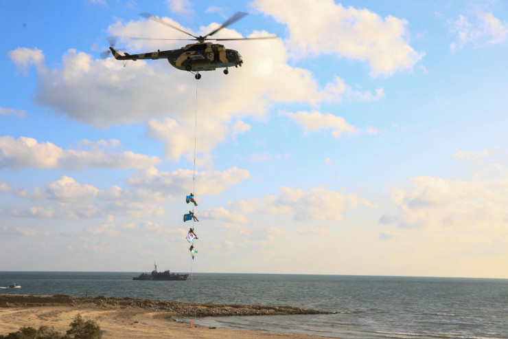 Военные моряки Казахстана и Азербайджана во взаимодействии с подразделениями специального назначения выполнили учебно-боевые задачи по поражению воздушных и наземных целей, освобождению гражданского корабля и его экипажа, оказанию помощи пострадавшему судну с его буксировкой, спасению и эвакуации экипажа.