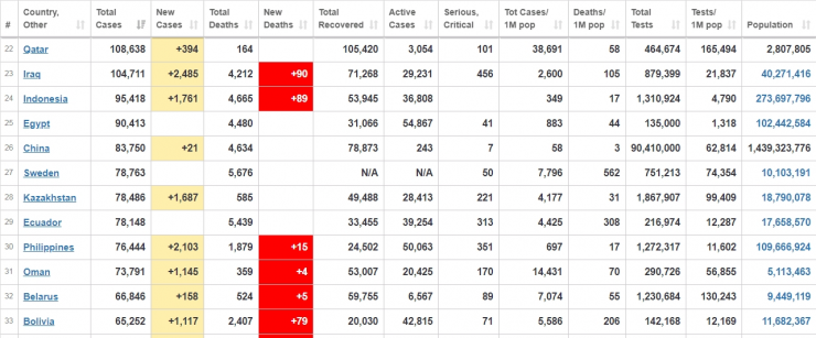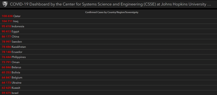 Согласно вышеназванным источникам, Казахстан находится на 28-м месте в мире по количеству подтвержденных случаев COVID-19.