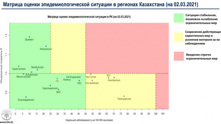 По данным МВК, в "красной" зоне нет ни одного региона Казахстана.