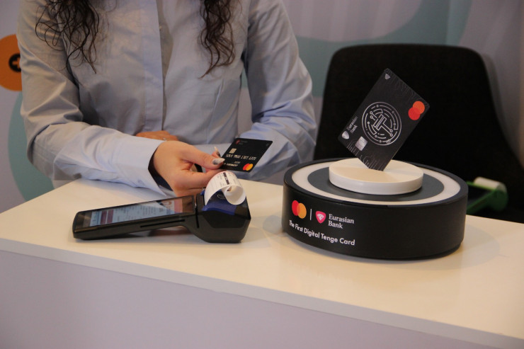 На XI Конгрессе финансистов Казахстана была представлена новая дебетовая карта в цифровом тенге, выпущенная Евразийским банком на платформе Mastercard. Первую покупку по карте совершил Бинур Жаленов, председатель Национальной платежной корпорации Казахстана. Средства на счете в цифровом тенге были мгновенно конвертированы в традиционный тенге и стали доступны для оплаты картой в любой точке мира.