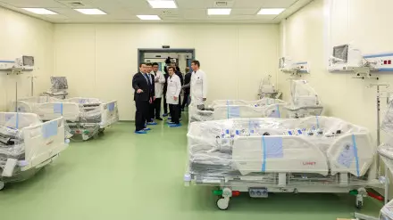 "У нас также предусмотрен центр онкогематологии. Здесь предусмотрено 15 коек для трансплантации костного мозга. Это абсолютно стерильные, чистые помещения, где в год планируется проводить от 180 до 200 трансплантаций. Тем самым мы сможем покрыть треть нуждающихся пациентов по республике", - глава Национального научного центра Санжар Шалекенов.