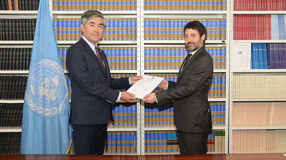 Постоянный представитель Казахстана при ООН Магжан Ильясов передал для депонирования в Секретариат ООН инструмент о ратификации Казахстаном Второго Факультативного протокола к Международному пакту о гражданских и политических правах, направленного на отмену смертной казни, передает Tengrinews.kz со ссылкой на сайт МИД Казахстана.