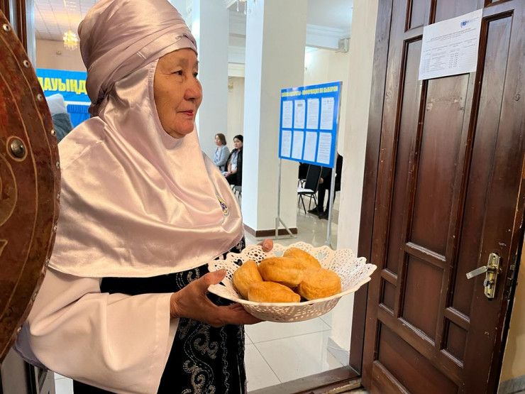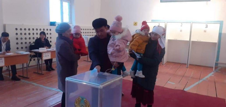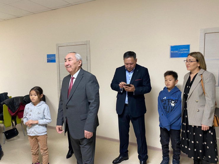 Кандидат Мейрам Кажыкен пришел на выборы с внучкой и женой