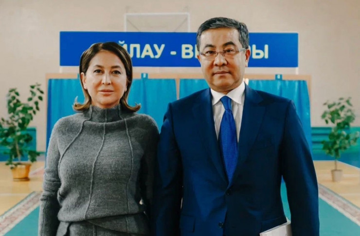 Спикер Мажилиса Ерлан Кошанов пришел на выборы со своей женой.