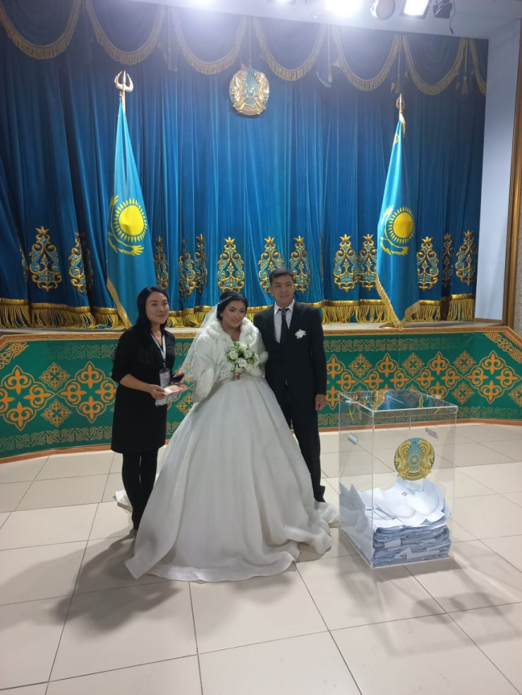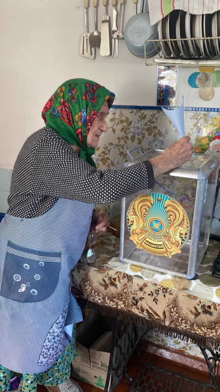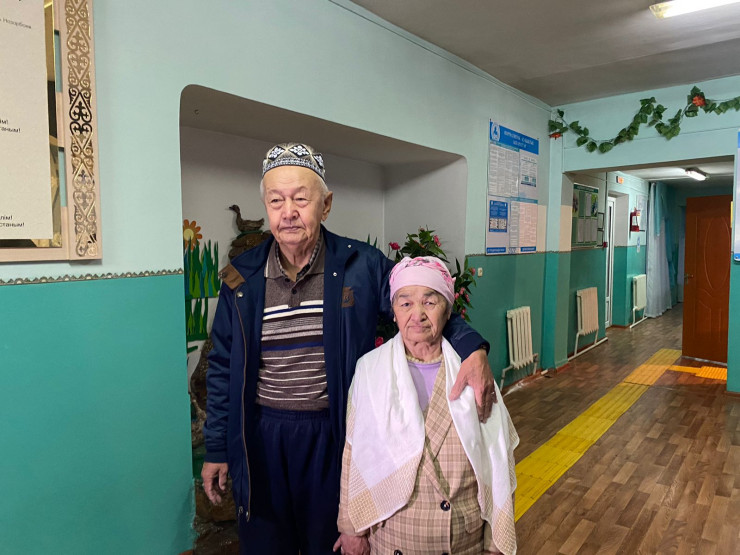 Вот такая замечательная пара голосовала сегодня на избирательном участке № 190 для постояльцев центра оказания специальных социальных услуг № 2 Туркестанской области. Это Касымбек Мусакулов и Салтанат Ишанходжаева. Они недавно узаконили свой брак - в стенах дома престарелых. Пенсионерка старше своего возлюбленного на 12 лет.