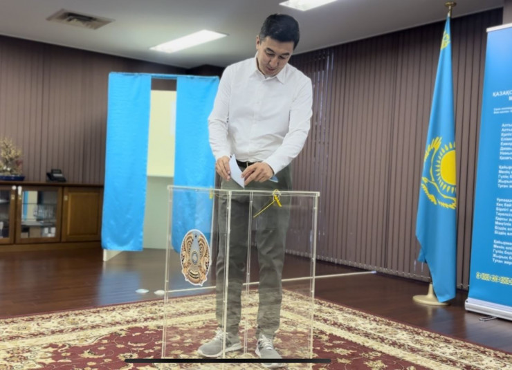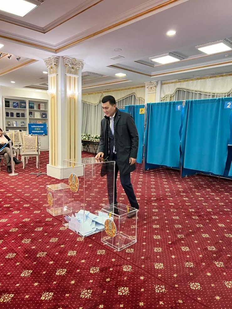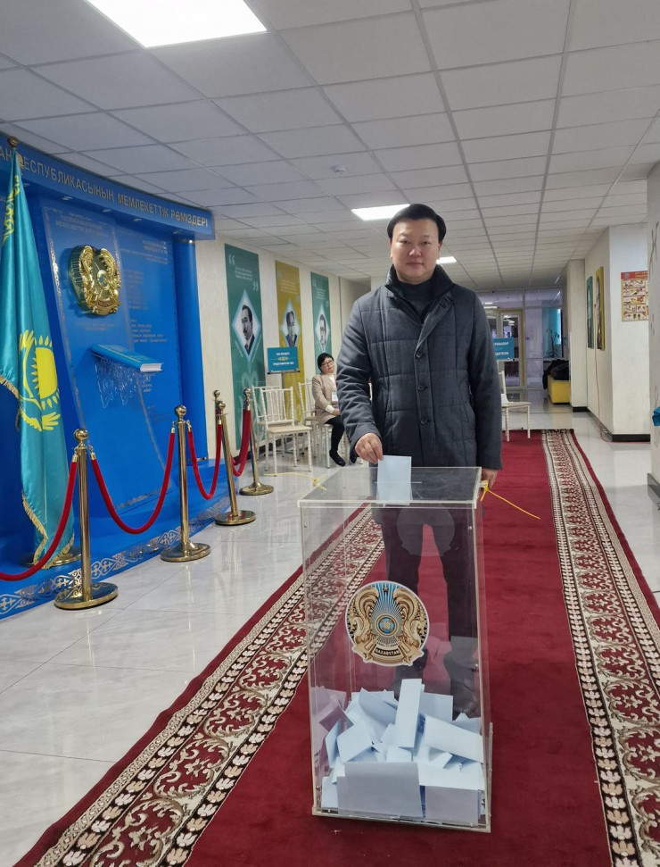 Министр обороны Руслан Жаксылыков пришел на свой избирательный участок одним из первых, спел гимн и проголосовал.