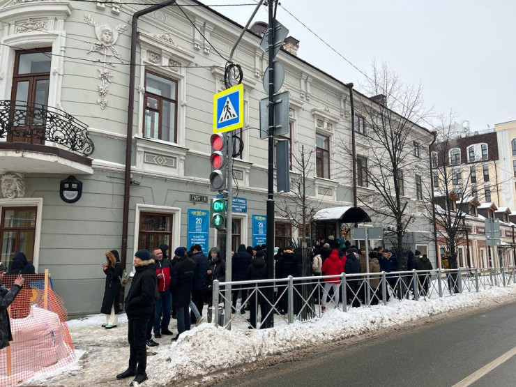 Очередь на избирательный участок в Казани. Люди приходят с флагами.