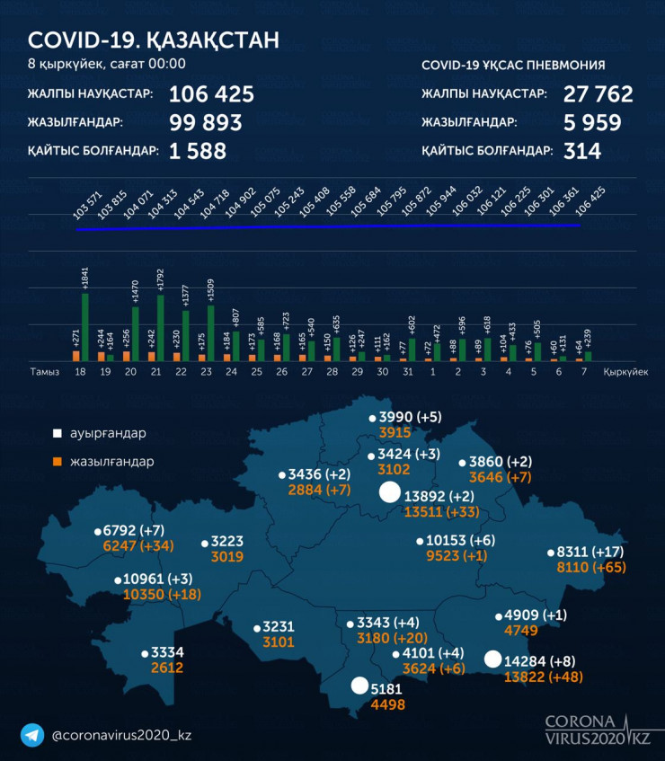 в городе Алматы - 14 284 (+8),