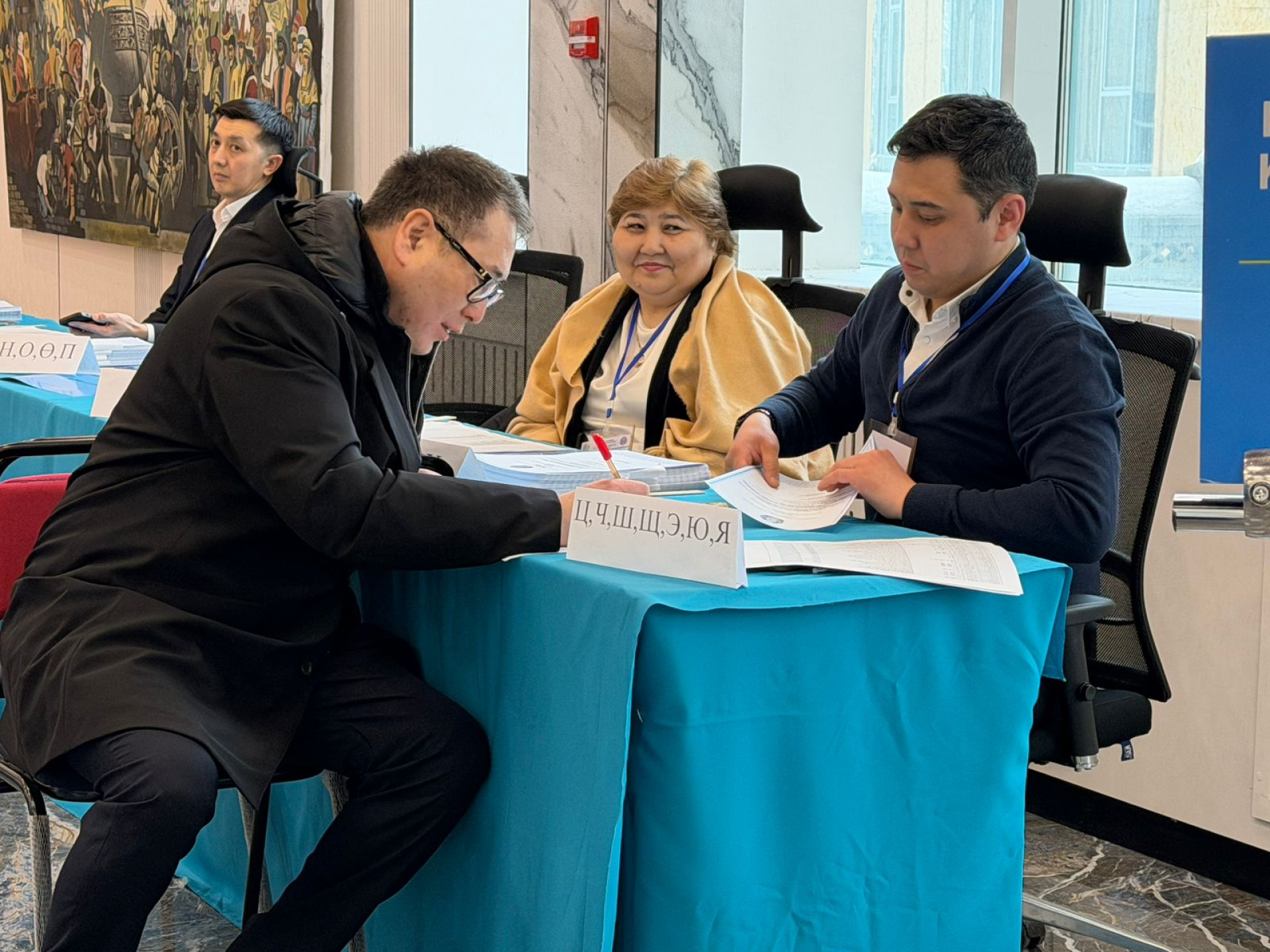 Глава МЧС Чингис Аринов также сделал свой выбор. Судя по фото, на участок в Президентском центре министр пришёл с отличным настроением.