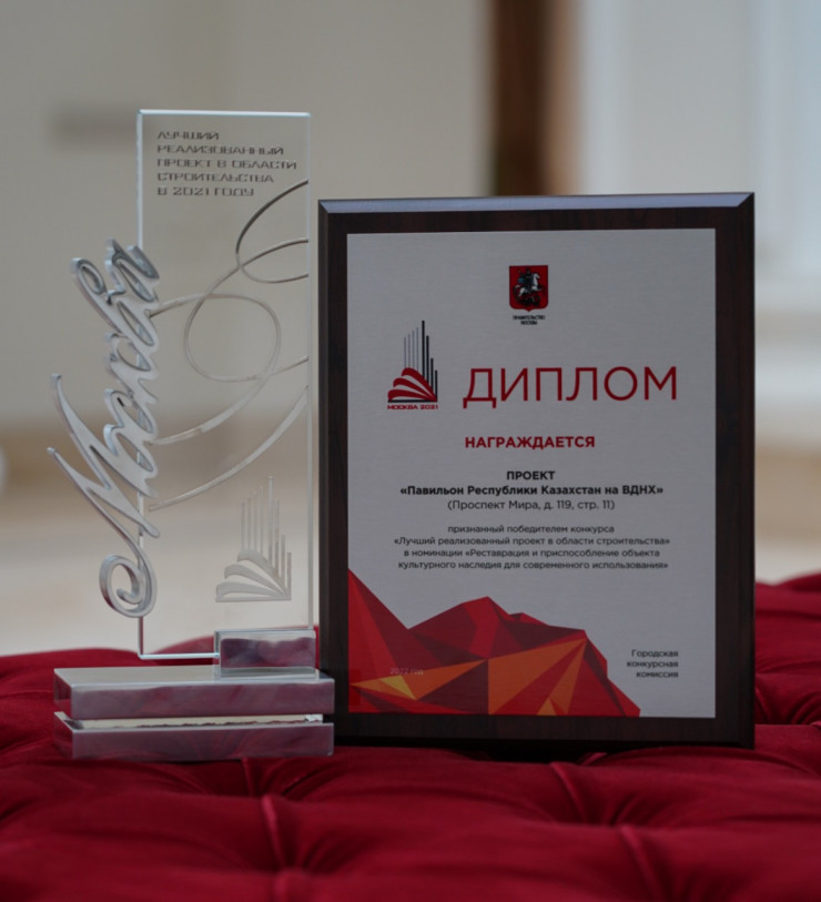 Павильон "Казахстан" на ВДНХ признали лучшим на конкурсе реализованных проектов в области строительства в Москве. Он победил в номинации "Реставрация и приспособление объекта культурного наследия для современного использования", сообщает сайт посольства Казахстана в России, передает Tengrinews.kz.