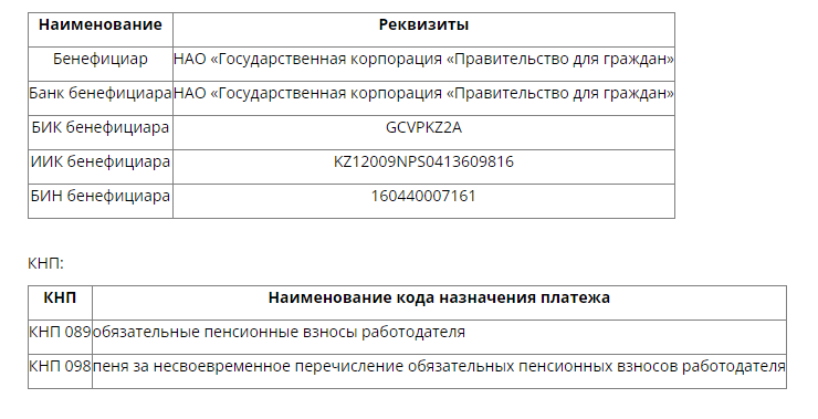 Частные предприниматели и ИП, не имеющие счетов в банках и организациях, осуществляющих отдельные виды банковских операций, вносят ОПВР наличными деньгами в банк для их последующего перечисления в ЕНПФ. Удержанные взносы перечисляются в госкорпорацию по нескольким реквизитам.