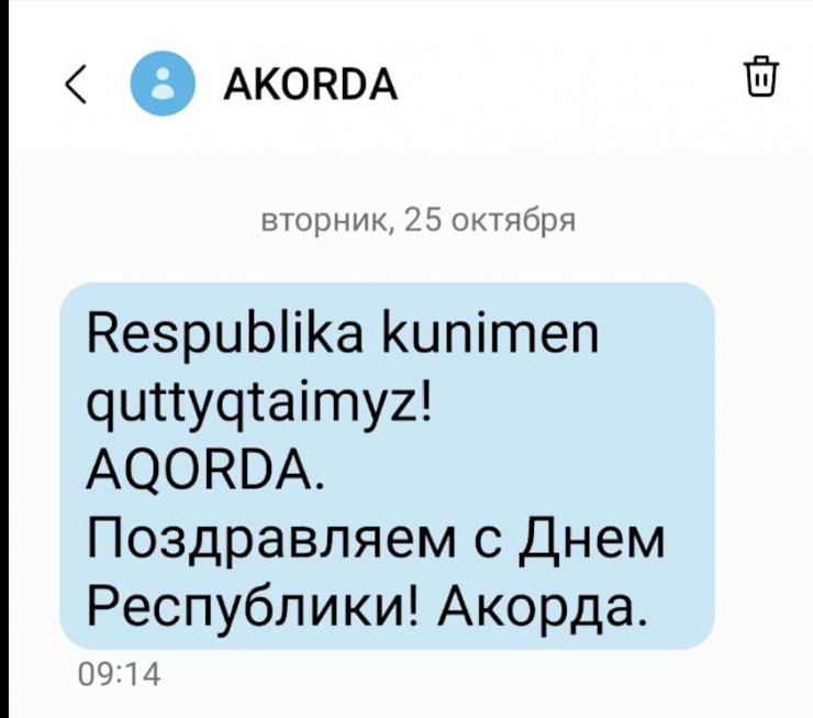 Казахстанцы получили поздравительные SMS от Акорды, передает корреспондент Tengrinews.kz.