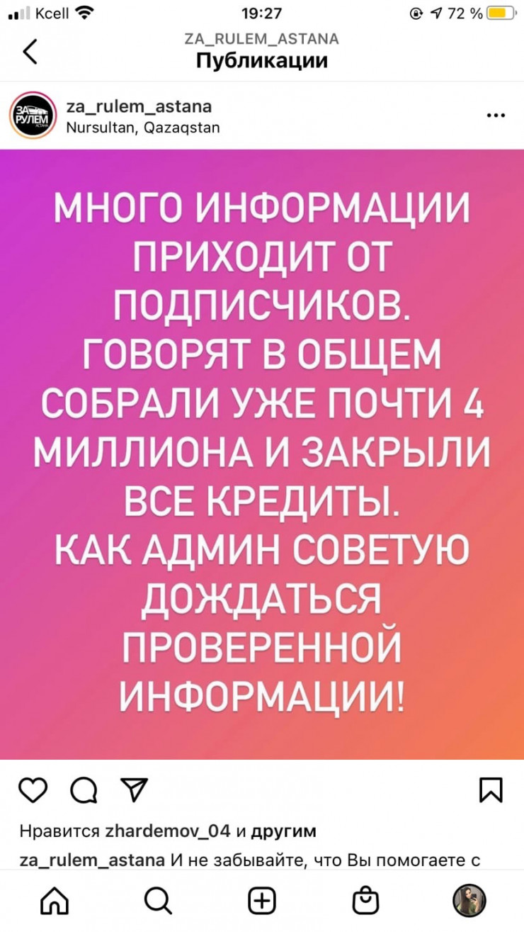По информации подписчиков za_rulem_astana, для мужчины и его ребенка собрано около четырех миллионов тенге.