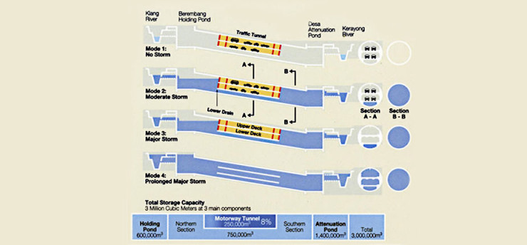Тоннелдің негізгі жұмыс режимдері. Фото: water.gov.my