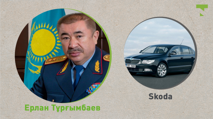 Ал ішкі істер министрі Ерлан Тұрғымбаев седан моделіндегі Skoda көлігімен жүреді. Көлемі 2 литр болатын көлік 2019 жылы Қазақстанда өндірілген.