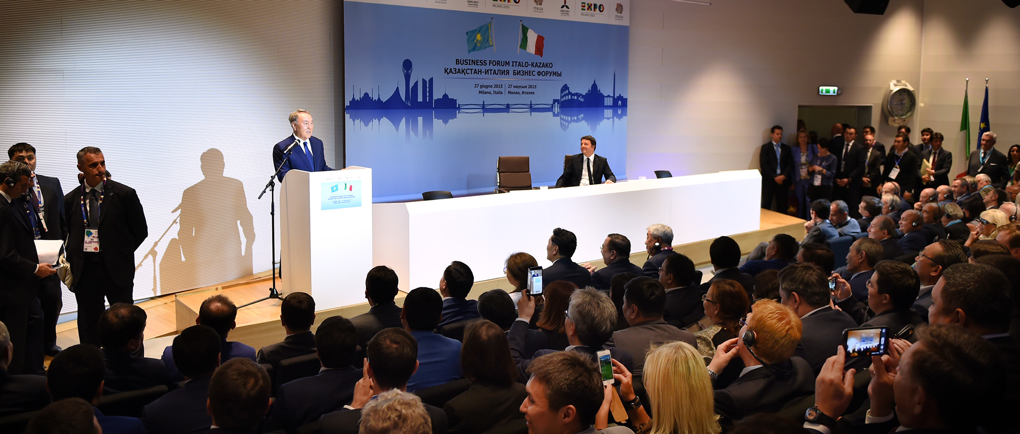 Нурсултан Назарбаев выступает на казахстанско-итальянском бизнес-форуме в Милане. © akorda.kz