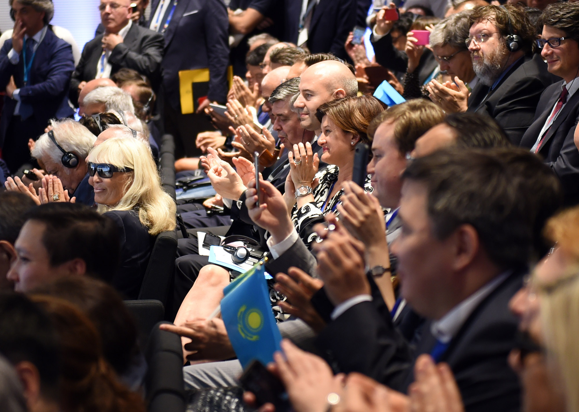 Выступление Президента Казахстана Нурсултана Назарбаева в Милане. © akorda.kz