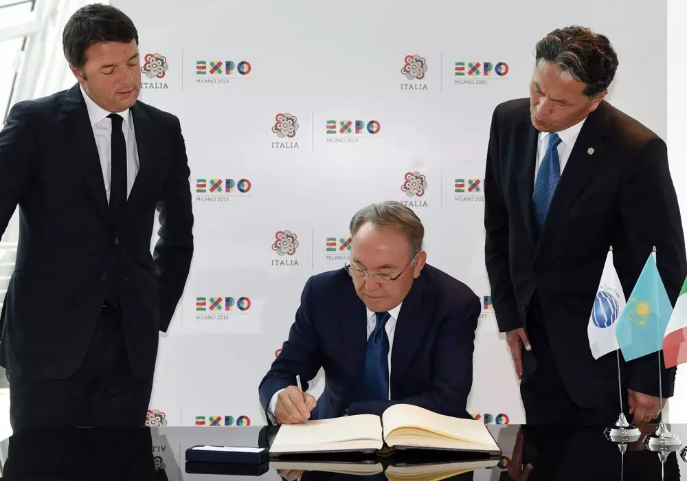 Запись в Книге почетных гостей итальянского павильона на международной выставке EXPO-2015 в Милане. © akorda.kz