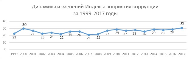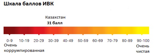 Казахстан набрал 31 балл и занял 122 место среди 180 стран мира, тем самым улучшив свой показатель на 2 балла и 9 позиций по сравнению с показателями 2016 года.