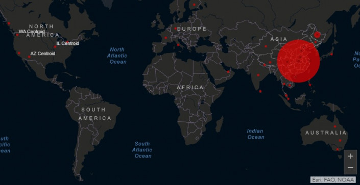 По данным онлайн-карты распространения коронавируса, которую ведет университет имени Джонса Хопкинса в США, болезнь зафиксирована в материковом Китае, Таиланде, Гонконге, Японии, Сингапуре, Австралии, Тайване, Малайзии, Макао, Южной Корее, США, Франции, Германии, ОАЭ, Канаде, Италии, Вьетнаме, Камбодже, Финляндии, Индии, Непале, Филиппинах и Шри-Ланке.
