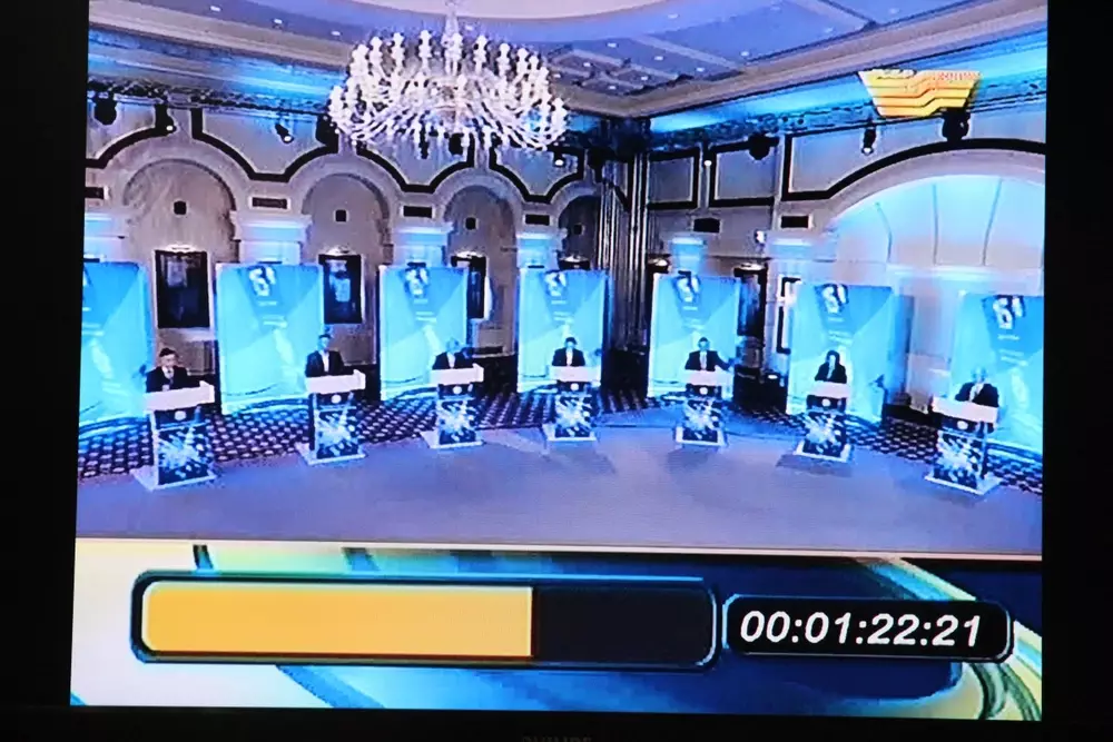 Первым согласно регламенту в раунде на тему "Экономика - основа успеха страны" выступил первый заместитель председателя народно-демократической партии "Нур Отан" Нурлан Нигматулин, который вкратце рассказал об успехах ведущей политической силы в стране и о том, что "Нур Отан" идет на выборы с четким планом по реализации стратегии Президента Казахстана.